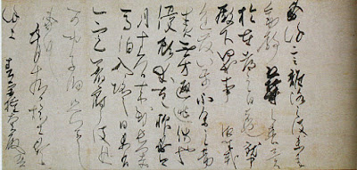 日本の手蹟三磧のうち、行成、道風は世に切れ多し、佐理卿が大切なる物なり。道風が名も高けれども、手蹟は佐理卿第一也。中華の書、宋書の藝文志の目録に、日本佐理が書一巻とあれば、二十一史の内にもしるしをく、さあれば中華にも重宝すと見ゆ。日本に残る内に伏見殿に佐理が文二枚あり、其内一枚、新院の御所にまいる、寛文十三年五月九日の炎上に、この文も焼失す。これ二枚の外は文もなく、又これほどながきものなににてもなし、焼失何より惜しき事なり。(『遠碧軒記』黒川道祐)